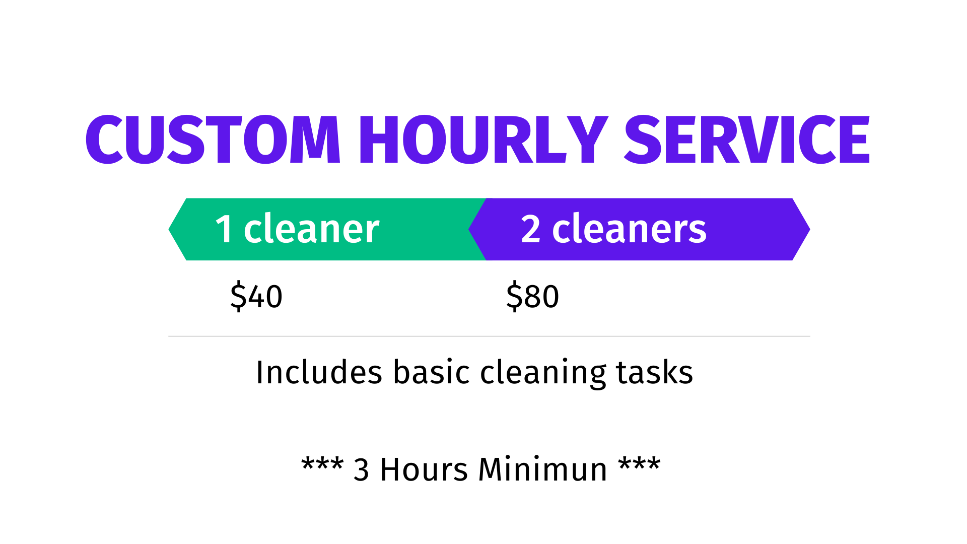 The cleaning time listed for each flat-rate cleaning package is an estimate. Your cleaning may take more or less time than estimated.